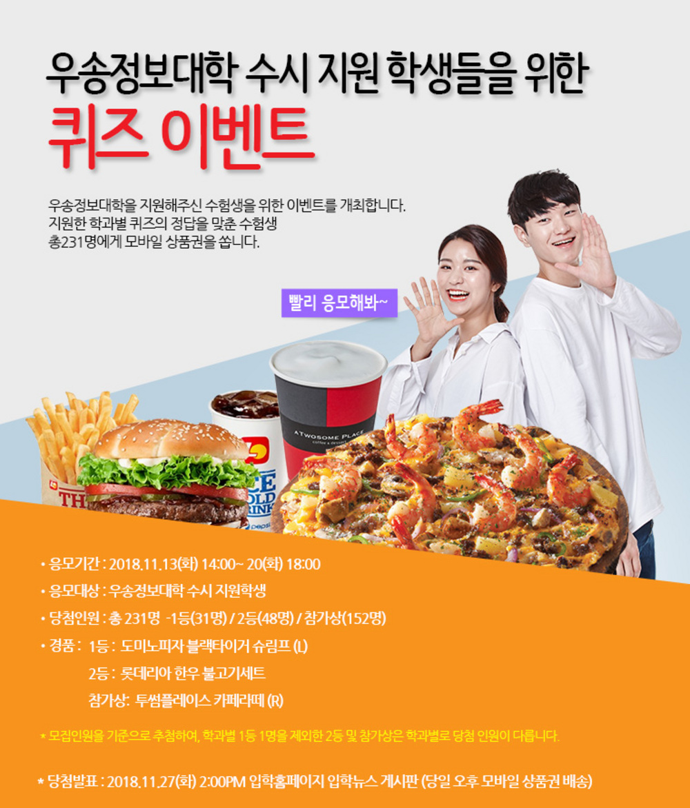 우송정보대학 수시 지원 학생들을 위한 퀴즈이벤트 (1차)